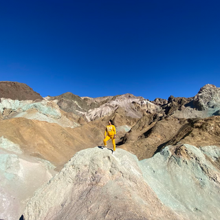 At about 5 miles in, you’ll reach Artist Palette — the main attraction of Artists Drive! Get out, soak it all in, take photos of the multi-colored canyons, and possibly hike down closer (we stayed at the top).